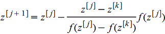 Для отыскания действительных корней действительных уравнений приближение z[j+1] обычно строят по z[j] и z[k], где k=k(j)<j - наибольший индекс, такой, что f(z[k]) и f(z[j]) имеют разные знаки: