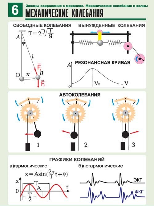 Механические колебания. Свободные и вынужденные колебания. Гармонические колебания. Упругие колебания. Математический маятник. Превращения энергии при гармонических колебаниях. |