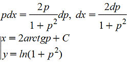 Если решение этого уравнения найдено в виде x=φ(p), то получим решение исходного уравнения в параметрической форме: